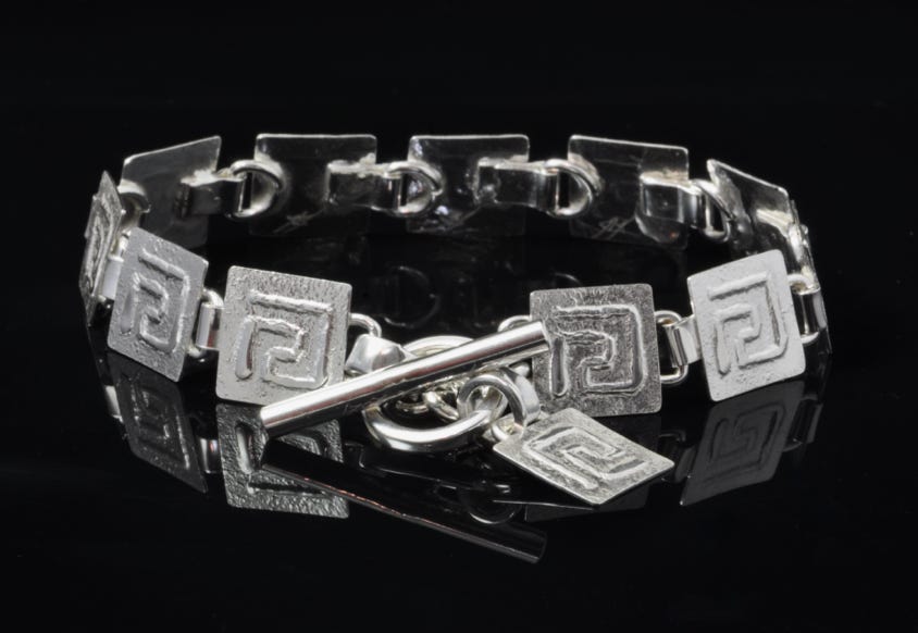 All of the work is done by me from initial design to final polishing. There is no mass production of designs or jewelry. No work is licensed for reproduction. No historic material was destroyed.
