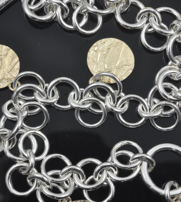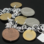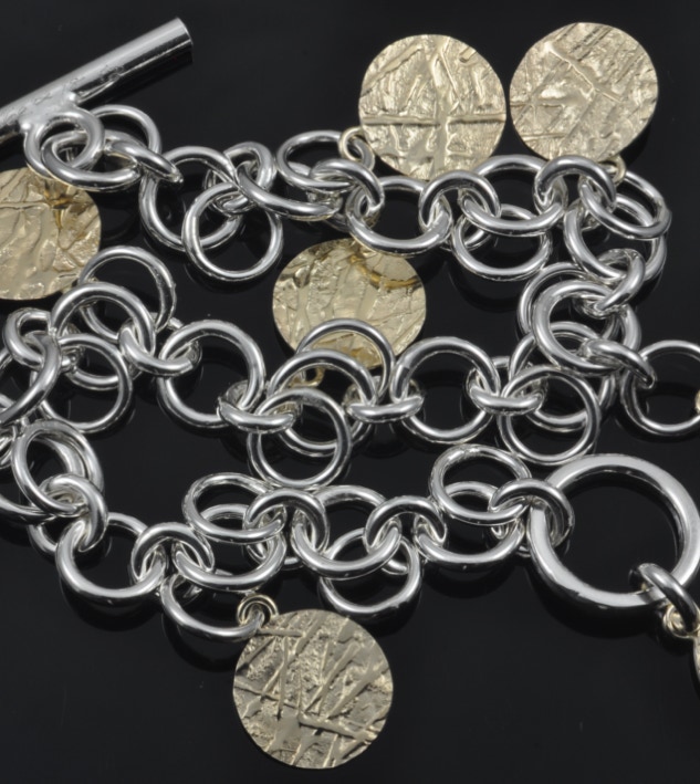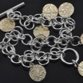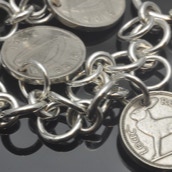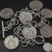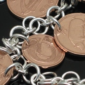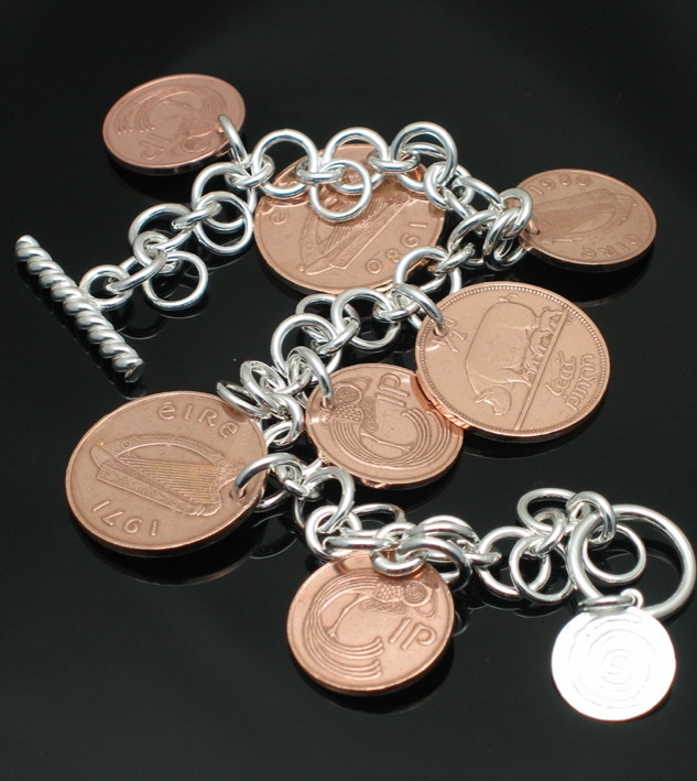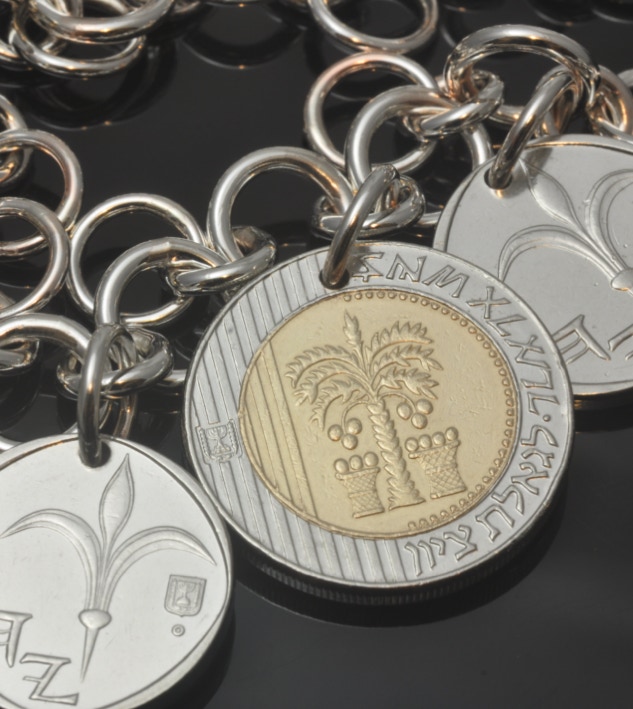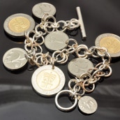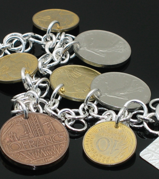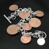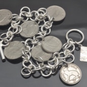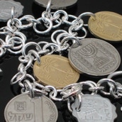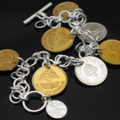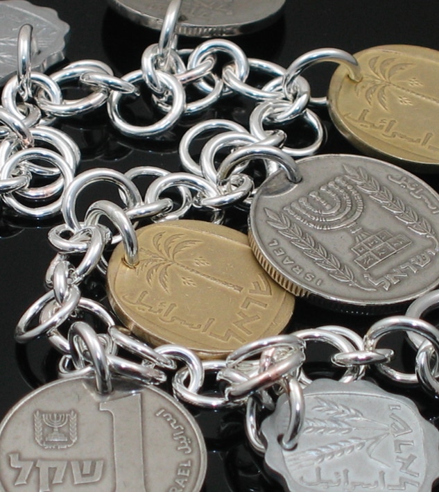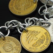 These Bedouin style bracelets are based on research of historic Bedouin metalwork, culture, and jewelry that I began in 2002 while visiting Jerusalem and the Negev. These designs are inspired by the jewelry worn by the women of the semi-nomadic tribes indigenous to the Negev desert region of Israel near Jordan. One marker of this jewelry is the fact that frequently coins did not match within the bracelet and were often mixed with different pieces of metal. In some aspects it is similar to Turkoman (or Turkmen) jewelry seen further east.