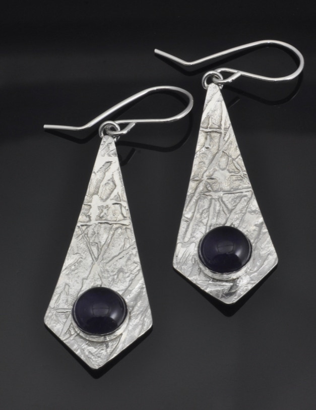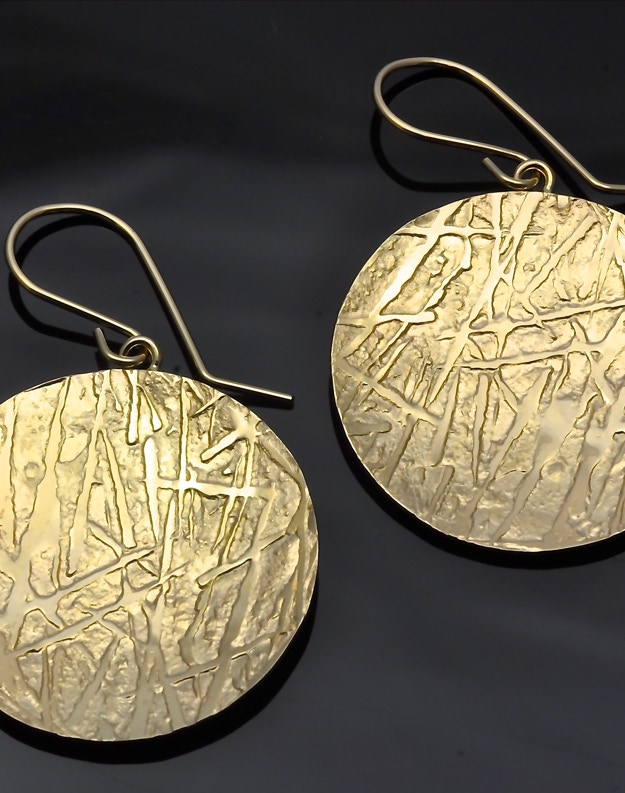These are a few examples of the work I do at the studio. Most of the metals used in the construction and fabrication of the earrings are either gold, nickel free sterling silver, platinum, or platinum sterling. Copper earrings can also be made upon request. Prices range from $25 for some of the designs in sterling to several hundred for designs in gold or platinum alloys.