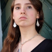 Earwires are hand made of nickel free sterling silver. The design is what I jokingly call my “kitty cat tail” earwires, in honor of a beloved cat I had as a child that had a crook in it’s tail. The flip at the end of the ear wires function in the same manner as leverback earwires in that they prevent the earwire from accidentally backing out of the ear. Each wire is hand shaped and then heat tempered for an hour in a kiln and then water quenched to ensure the proper amount of spring/tension in each wire.