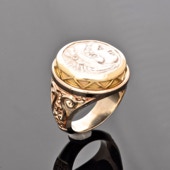 Example of 17th C. Bronze/brass alloy Jesuit ring with image of Saint Peter holding the keys to heaven,