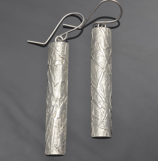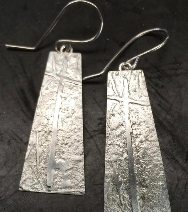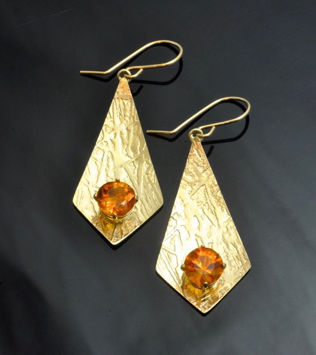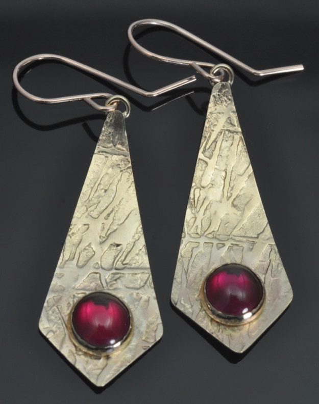 These are a few examples of the work I do at the studio. Most of the metals used in the construction and fabrication of the earrings are either gold, nickel free sterling silver, platinum, or platinum sterling. Copper earrings can also be made upon request. Prices range from $25 for some of the designs in sterling to several hundred for designs in gold or platinum alloys.