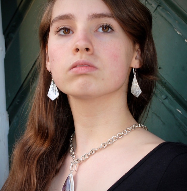 Earwires are hand made of nickel free sterling silver. The design is what I jokingly call my “kitty cat tail” earwires, in honor of a beloved cat I had as a child that had a crook in it’s tail. The flip at the end of the ear wires function in the same manner as leverback earwires in that they prevent the earwire from accidentally backing out of the ear. Each wire is hand shaped and then heat tempered for an hour in a kiln and then water quenched to ensure the proper amount of spring/tension in each wire.