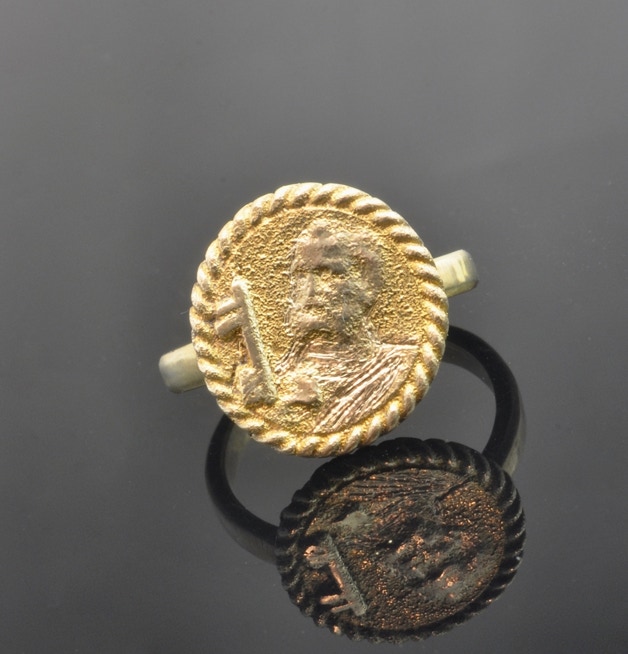 Example of 17th C. Bronze/brass alloy Jesuit ring with image of Saint Peter holding the keys to heaven,
